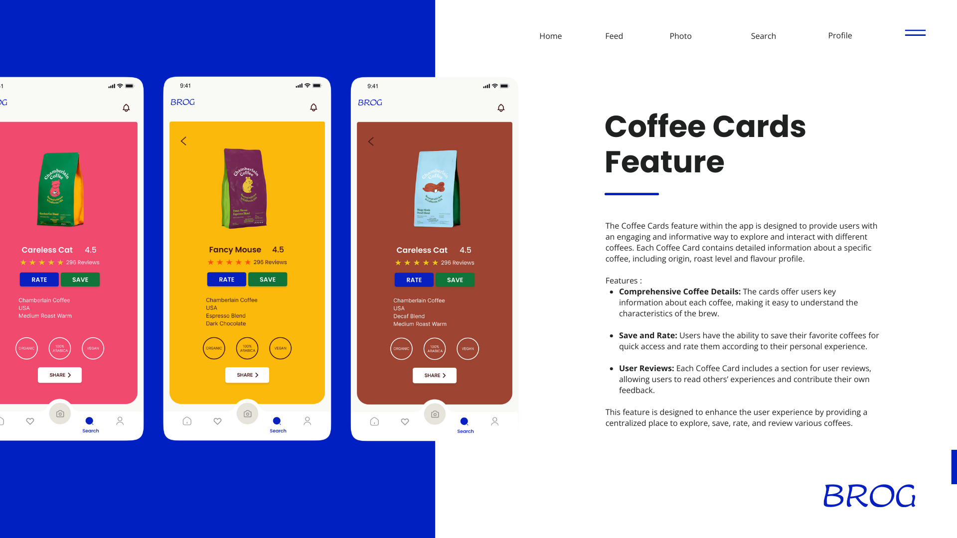 UI/UX development of the BROG coffee and community app, focused on creating an intuitive and engaging user experience. Designed during my internship at Merge IT Copenhagen, with an emphasis on fostering connections within the coffee community.